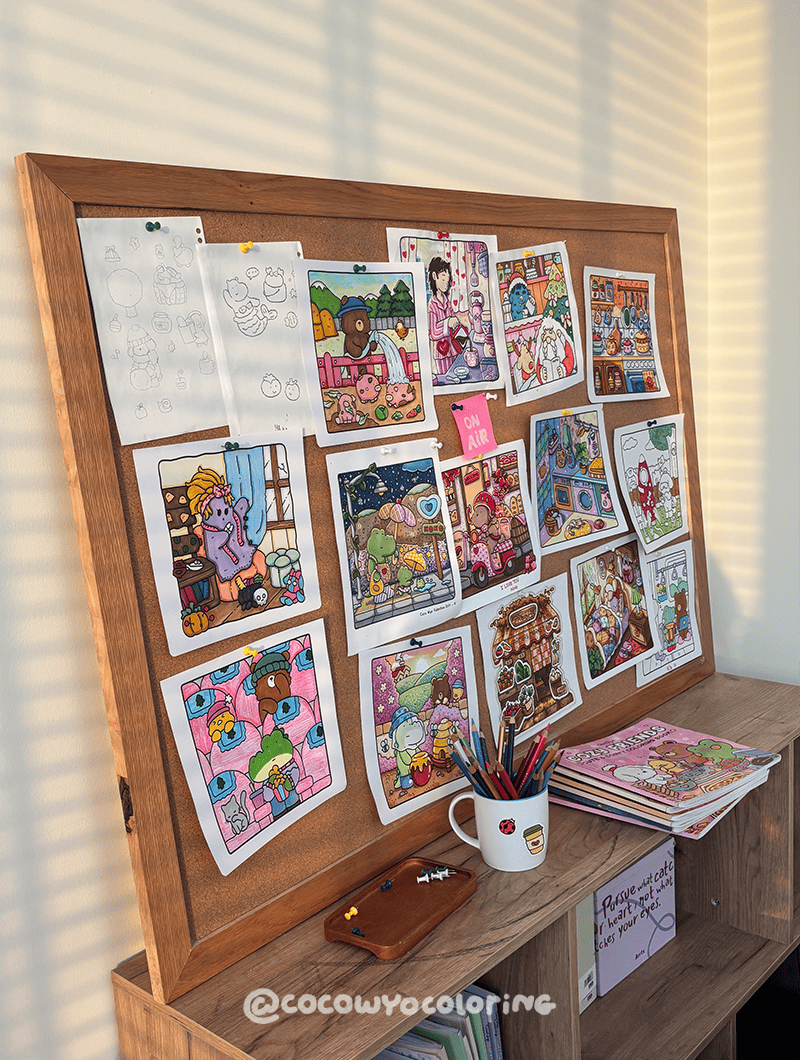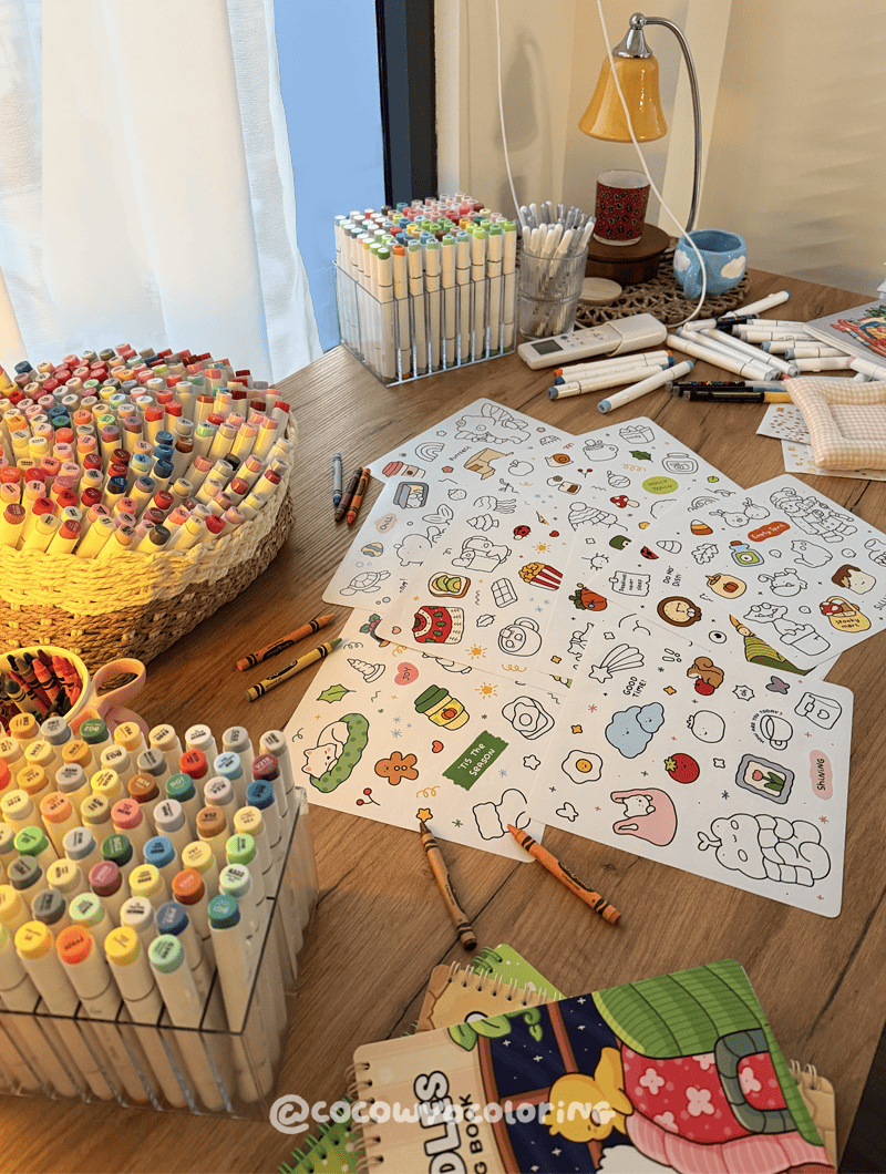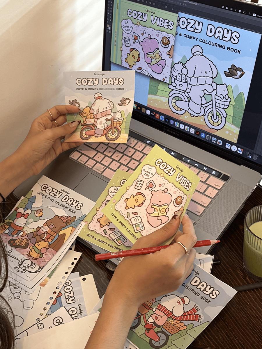 We craft these coloring books to offer comfort and relaxation to people like us. We may feel overwhelmed, restless, and anxious at times, but when we sit down with something as simple and calming as these pages, we're reminded that the smallest moments can ground us in life. Hand-drawn with love and care, designed to create a soothing experience, these books are enjoyed gently, helping you find a cozy moment in every little detail.