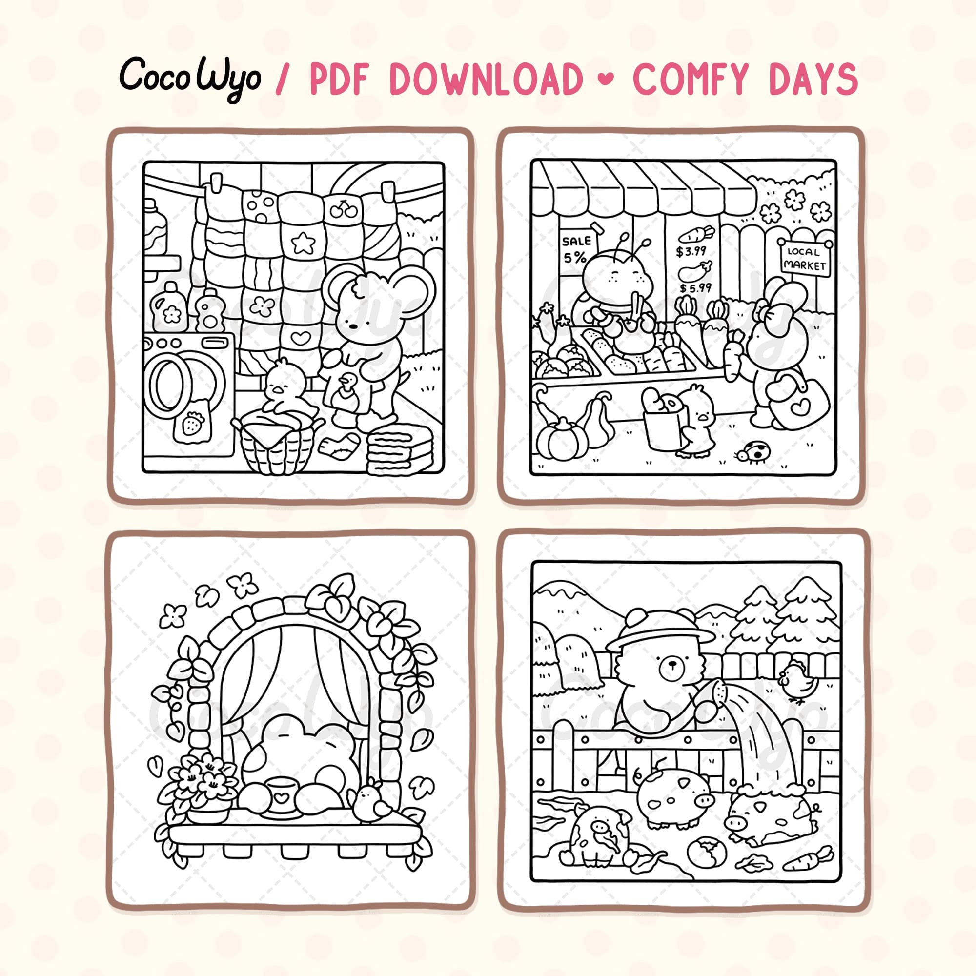 This 6-page coloring book is bursting with adorable animal characters living their best lives, with a splash of seasonal charm! Each page hides delightful little stories waiting to be uncovered as you color your way to pure relaxation. So, get comfy, grab your favorite colors, and let your creativity turn these charming scenes into your next masterpiece!