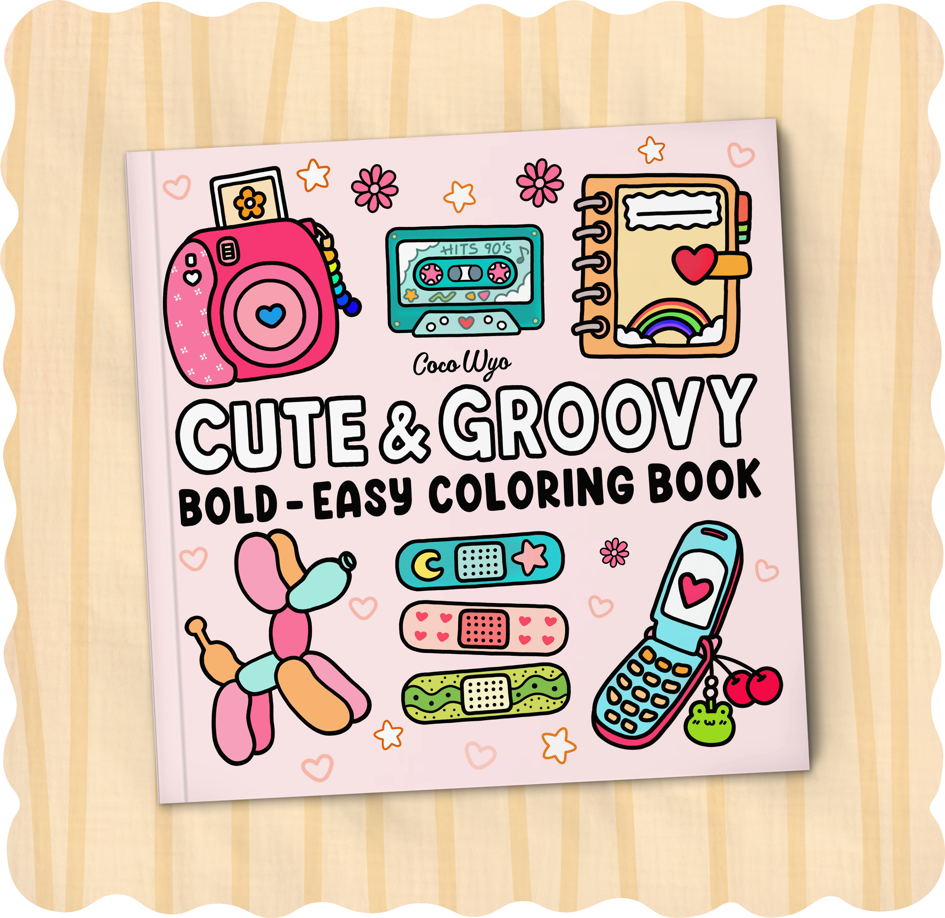 These are 52 big, bold, and easy coloring pages offer tons of fun and include cute and vintage groovy things