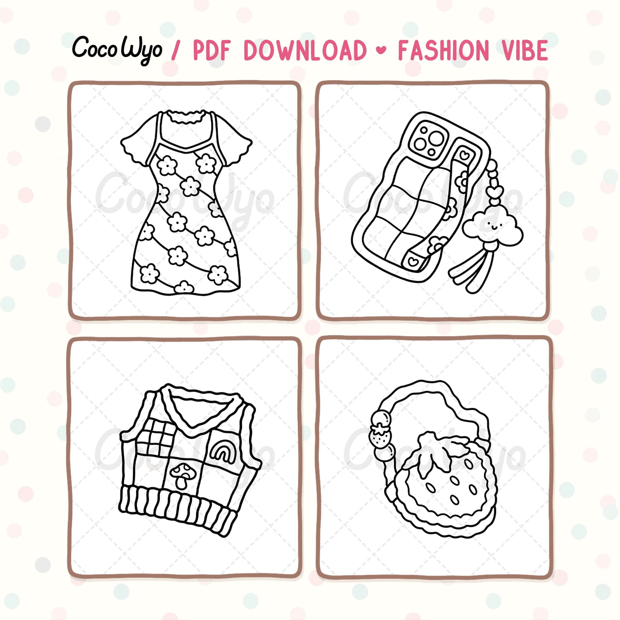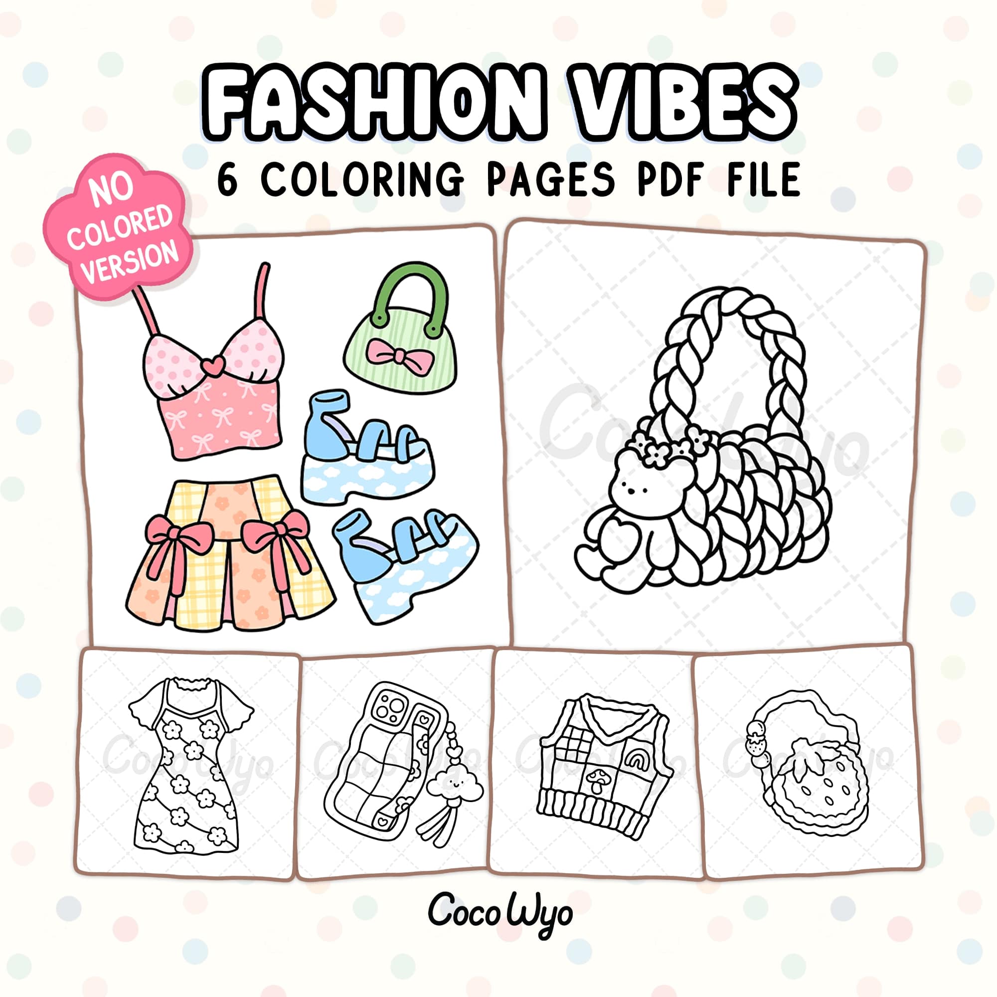 Get ready to dive into these 6 big, bold, and fabulously fun coloring pages packed with chic clothing and must-have accessories! Unwind in style as you color these trendy, groovy designs—perfect for adding your flair and turning them into a fashion statement. The lines are bold enough to keep smudges at bay, so you can focus on making these outfits pop with your creativity!