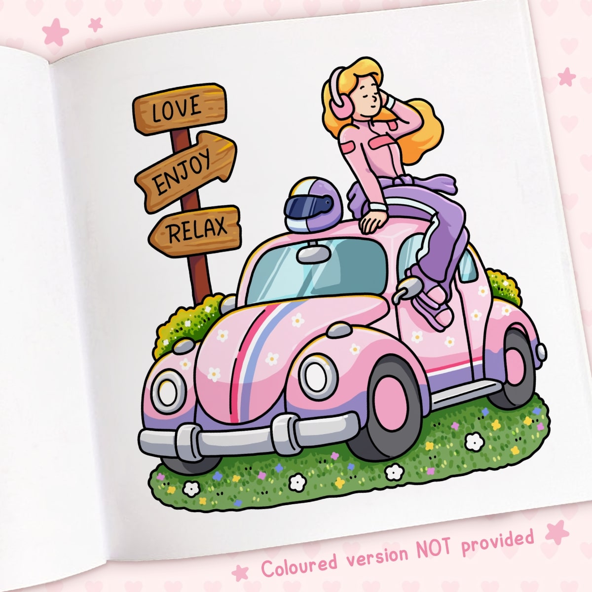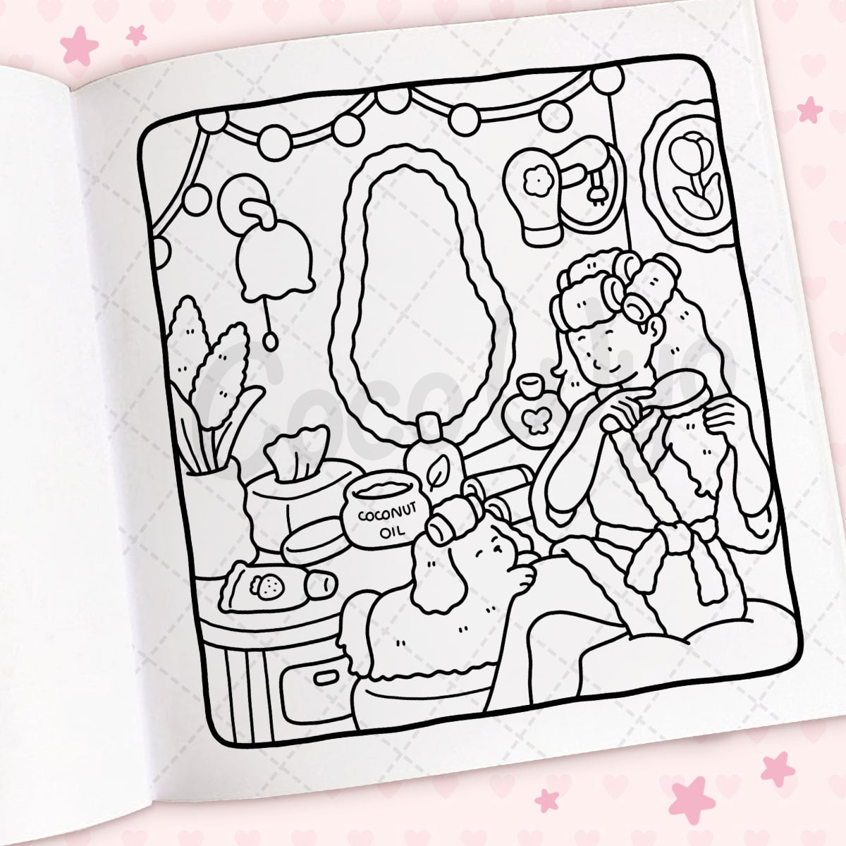 Girl Moments Vol. 2 is a gentle celebration of everyday life, the kind of moments that don’t need to be loud to be meaningful. From journaling in cozy corners, feeding bunnies, to sharing quiet time with a friend, this coloring book invites you to pause, breathe, and color your way through the little things that matter most.