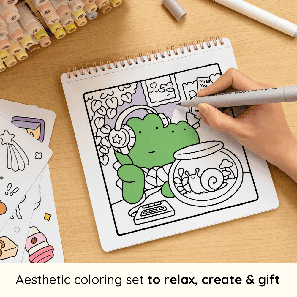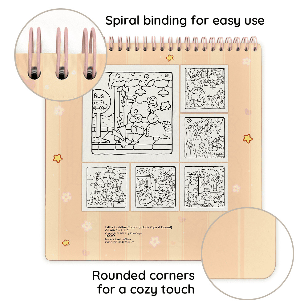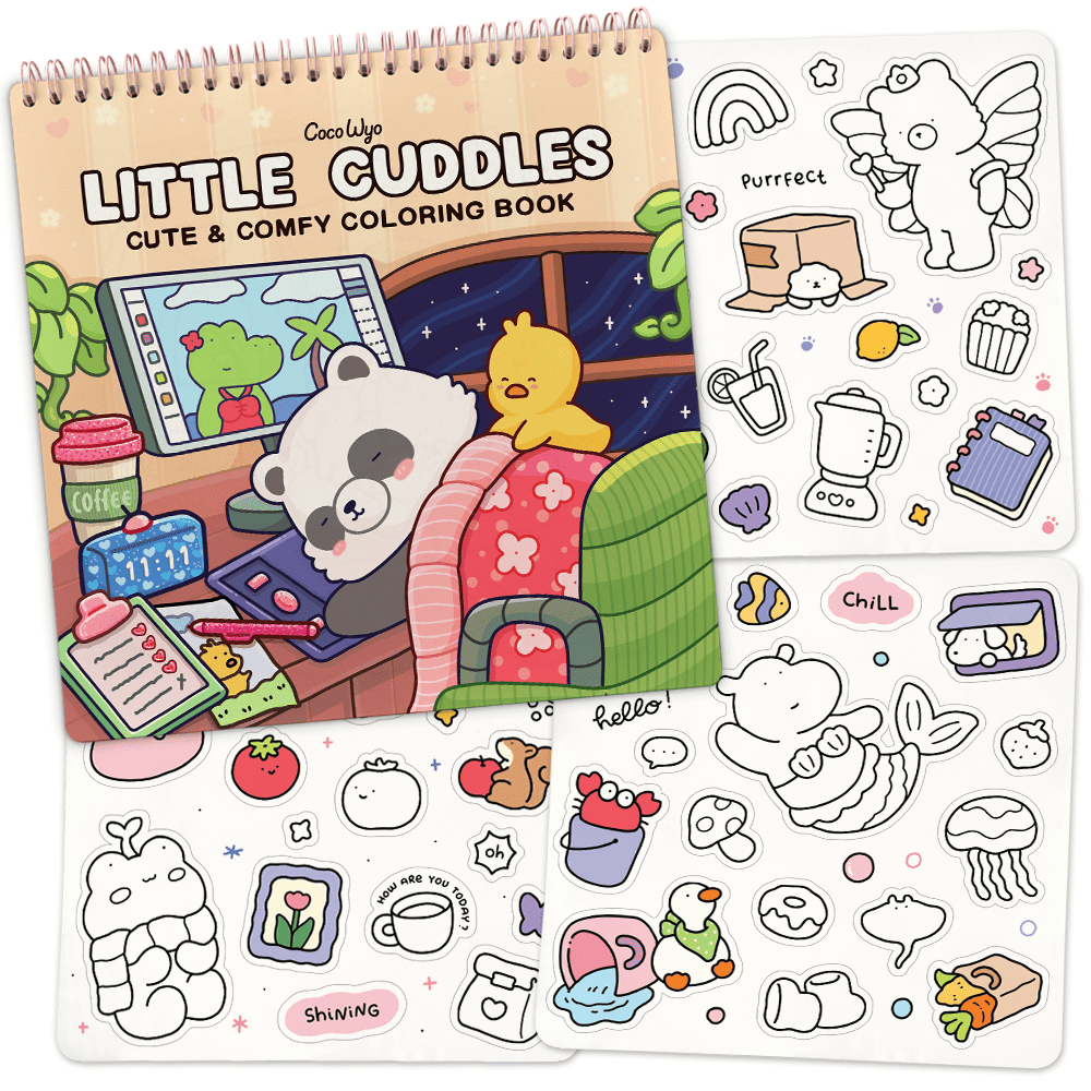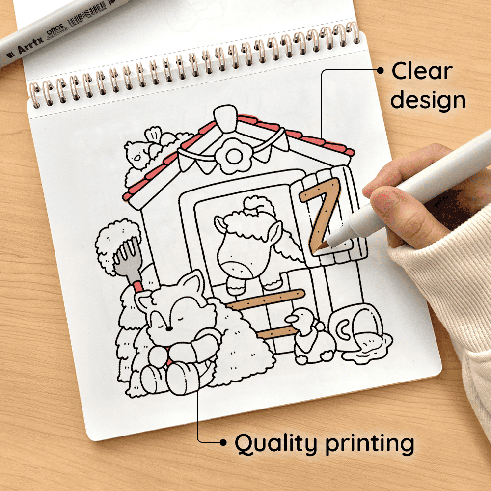 Meet delightful animal characters in their cozy daily activities. Sized at 8.5 x 8.5 inches, this book includes 40 hand-drawn coloring pages, made for calm and relaxing coloring moments.