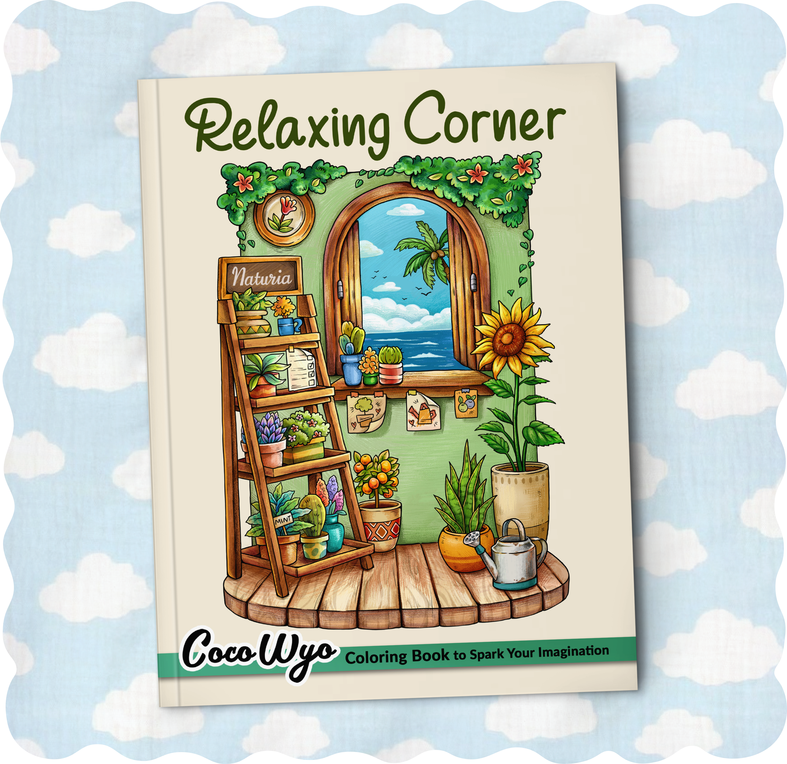 Are you looking for a little slice of tranquility in your day? Immerse yourself in the peace of familiar little spaces that evoke a sense of calm and relaxation with the Relaxing Corner Coloring Book.